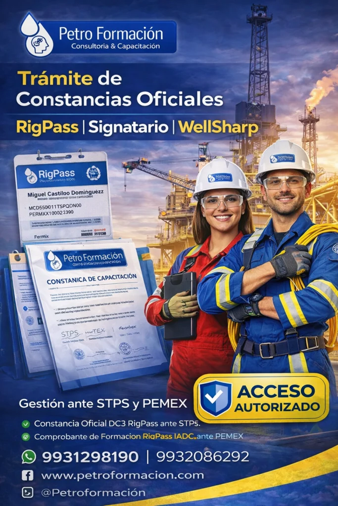 Capacitación en RigPass, Signatario y WellSharp, en alianza con socios estratégicos, para cumplir con los requisitos de ingreso y operación en instalaciones petroleras.