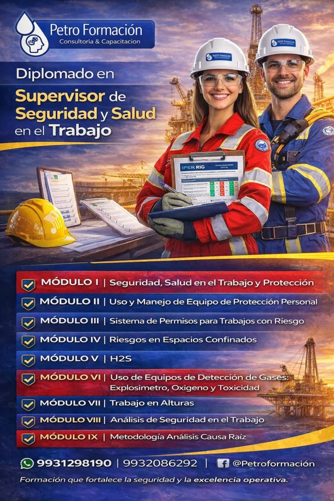 Capacitación impartida por profesionales con trayectoria en el sector petrolero, seguridad industrial y sistemas de gestión.